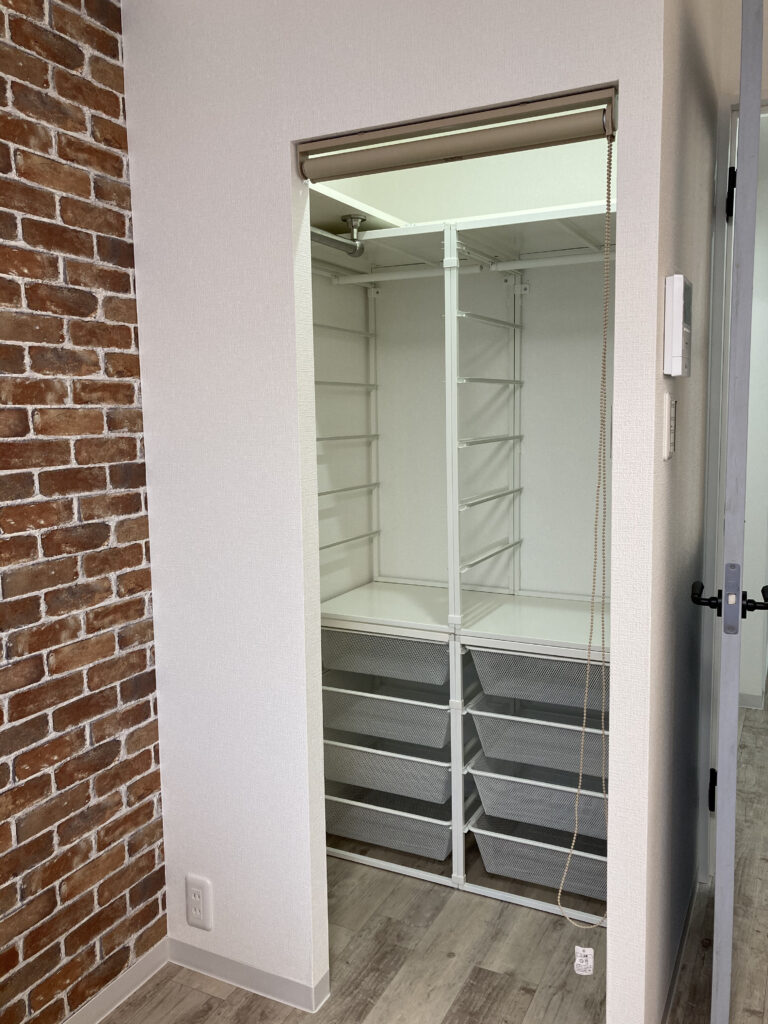 ロールカーテンの向こうには、思わず秘密にしておきたくなるようなウォークインクローゼット。